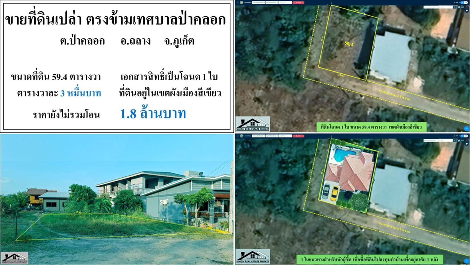 ที่ดินแปลงนี้เป็นโฉนด1ใบ ขนาด59.4ตรว. อยู่ซอยตรงข้ามเทศบาลป่าคลอก โดยเข้าซอยไปประมาณ 140 ม.ก็ถึงแปลงที่ดิน โดยที่ดินอยู่ด้านขวามือรูปร่างเป็นสี่เหลี่ยมและสภาพที่ราบไม่ต้องปรับถมเพิ่ม ถนนคอนกรีตเกือบถึงแปลงที่ดินรอเพียงทางเทศบาลนำงบมาต่อถนนให้เสร็จ ที่ตั้งและขนาดที่ดินเหมาะมากที่จะปลูกบ้านอยู่หรือลงทุนทำบ้านขาย2-3หลัง ที่ดินเพิ่งครอบครองปีกว่าจึงมีค่าภาษีธุรกิจเฉพาะที่ต้องชำระฝั่งละครึ่งกับผู้ซื้อ ท่านใดมองหาที่ดินเพื่อปลูกบ้านขนาด60ตรว.โซนป่าคลอก ก็ขอแนะนำที่ดินแปลงนี้เป็นตัวเลือกอีกแปลง...
