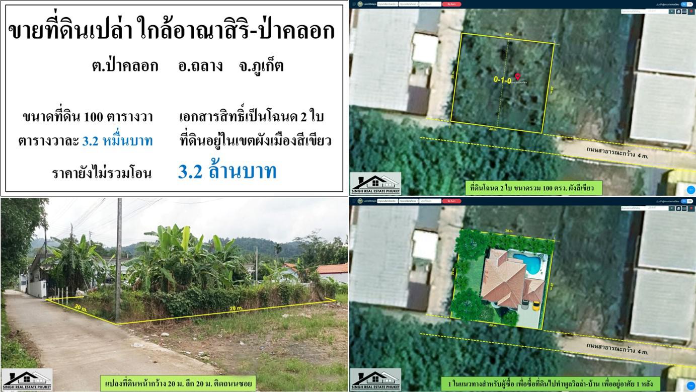 ขายที่ดินเปล่า 100 ตรว. ซ.มังกี้พ่อด โฉนด2ใบ ผังสีเขียว ***วา3.2หมื่น***