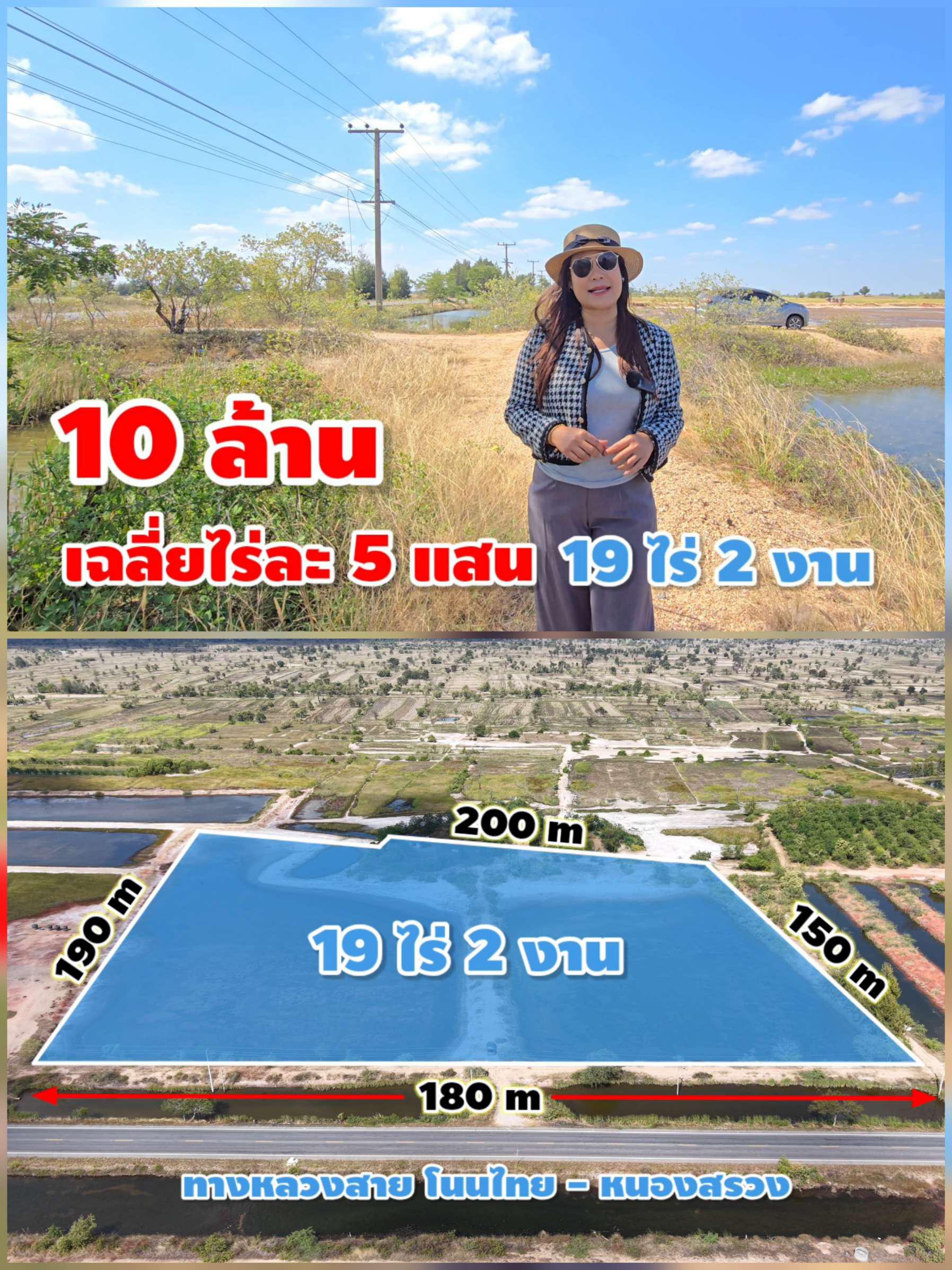 อ.โนนไทย จ.นครราชสีมา | 19 ไร่ 2 งาน | หน้ากว้าง 180 เมตร