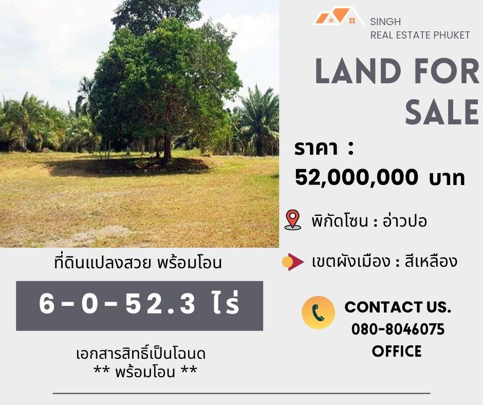 ** LAND FOR SALE ** ที่ดินเปล่า 6-0-52.3 ไร่ ( ป่าคลอก - อ่าวปอ )
