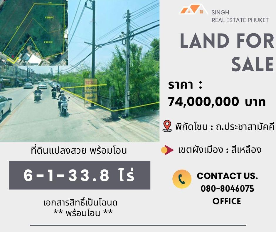 ** LAND FOR SALE ** ที่ดินเปล่า 6-1-33.8 ไร่ ( ถนนประชาสามัคคี )