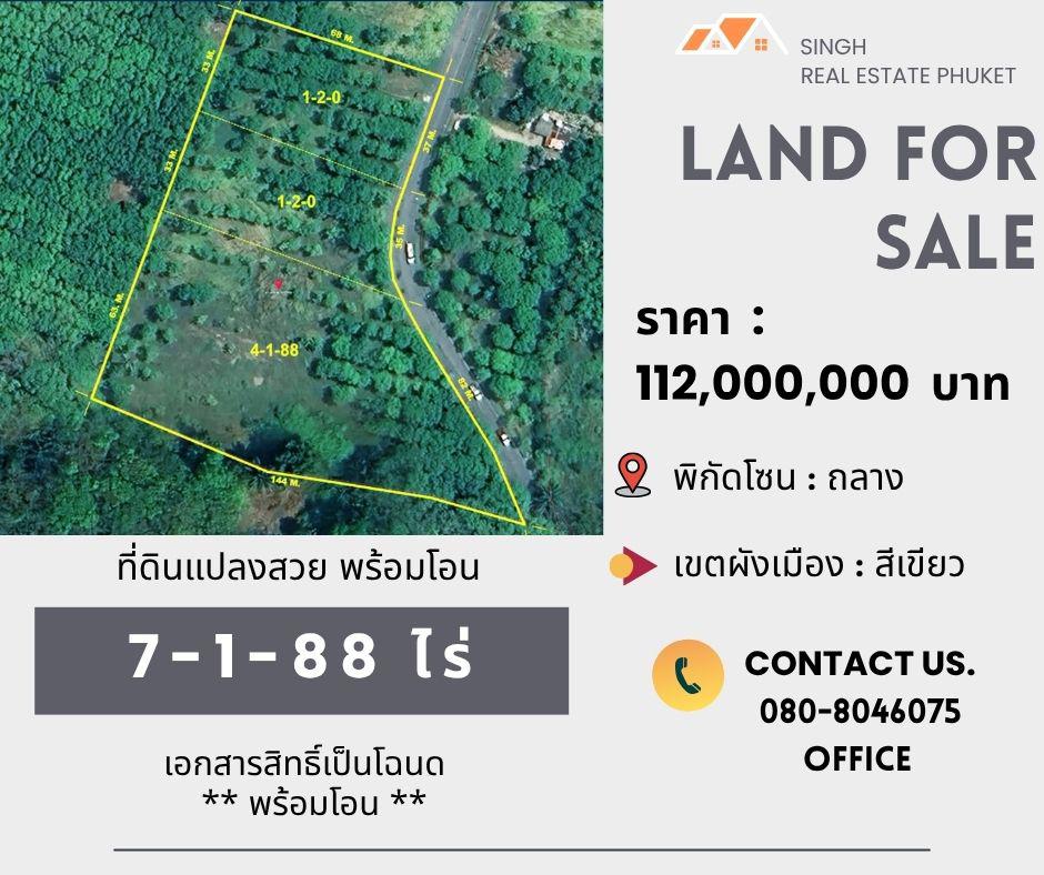 - ขนาดที่ดิน 7-1-88 ไร่ ( ใกล้โรบินสันอนุเสาวรีย์ - ศรีสุนทร )