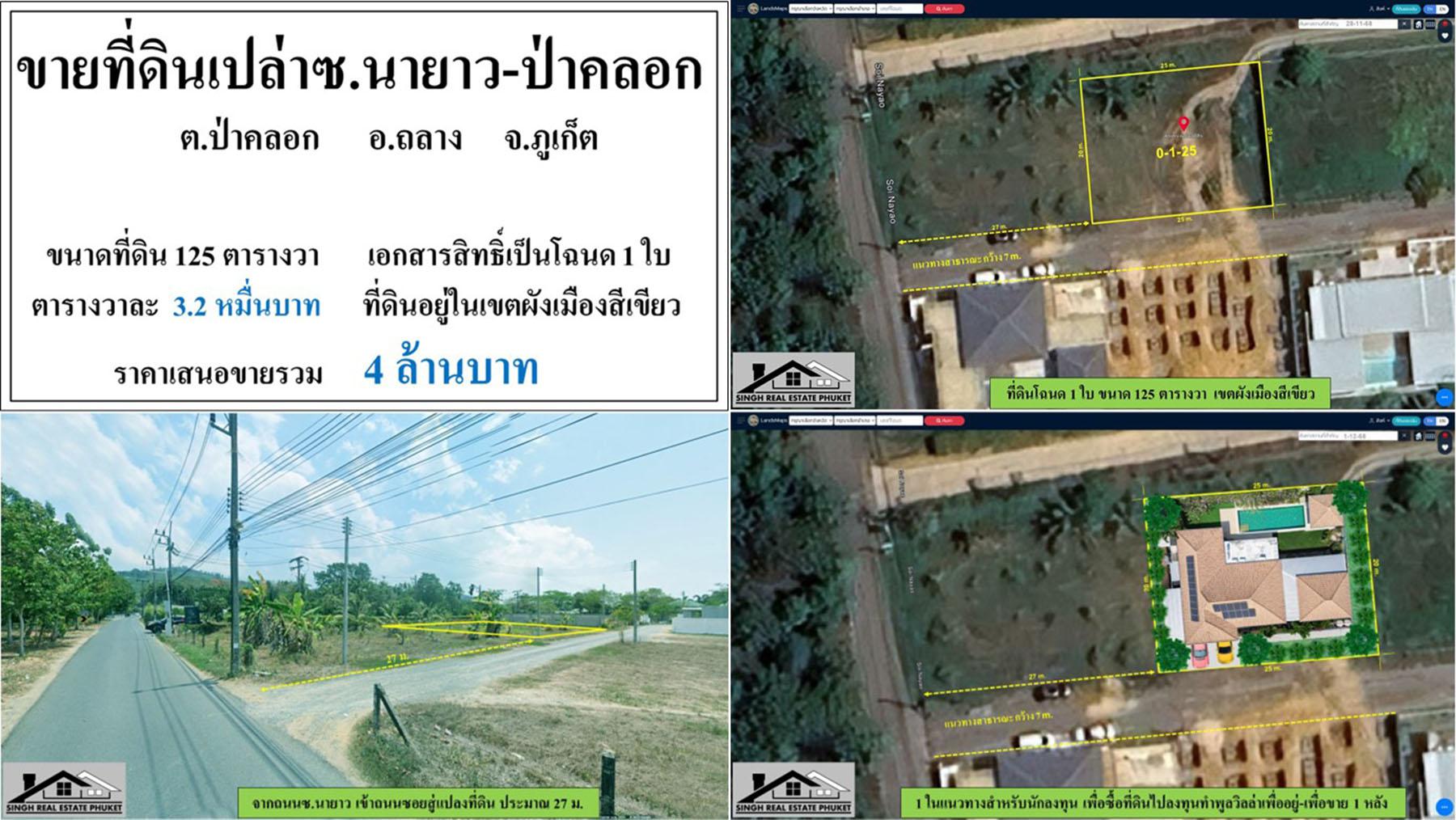 ขายที่ดินเปล่า 125 ตรว. ซ.นายาว-ป่าคลอก โฉนด 1 ใบ ผังสีเขียว ***วาละ3.2หมื่น**