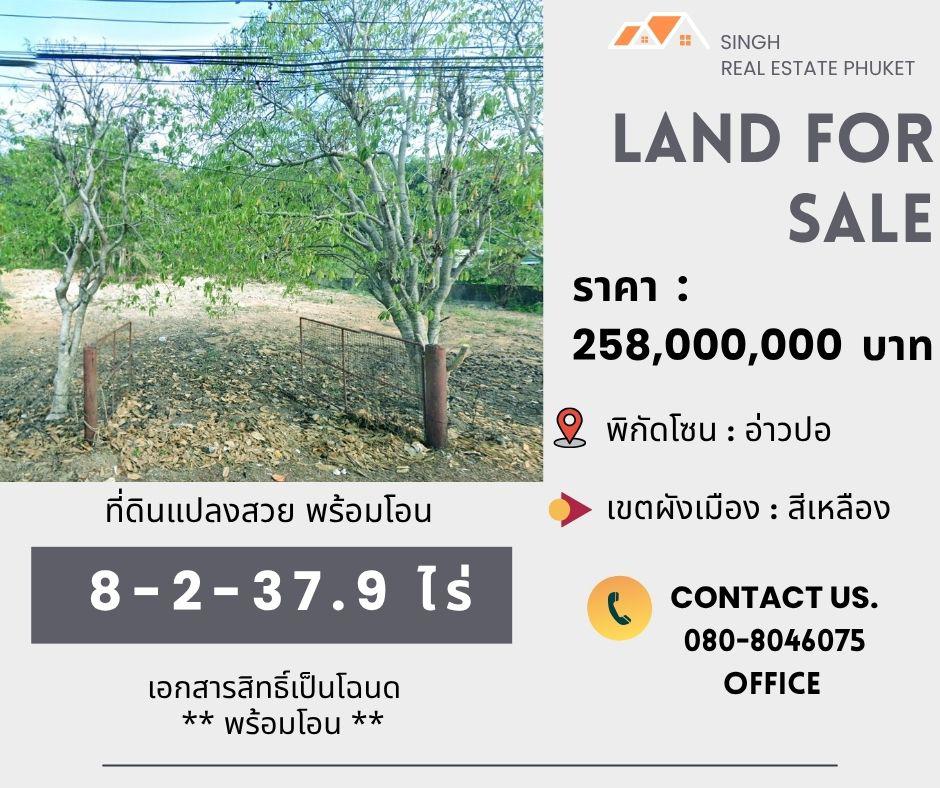 ** LAND FOR SALE ** ที่ดินเปล่า 8-2-37.9 ไร่ ( อ่าวปอ - ป่าคลอก )