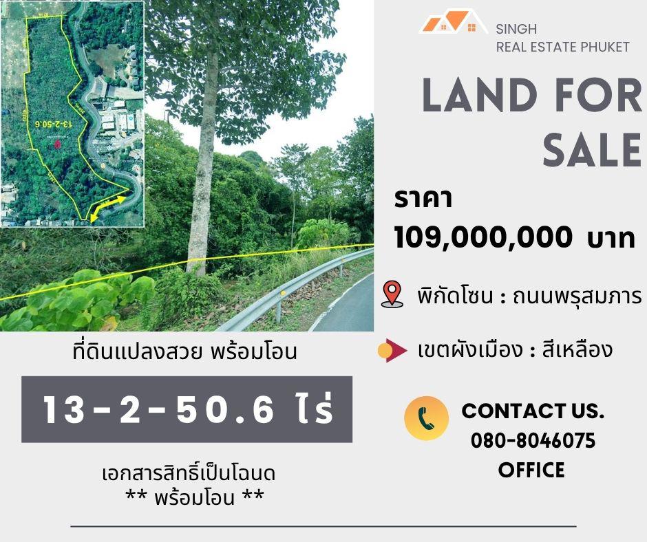 ** LAND FOR SALE ** ที่ดินเปล่า 13-2-50.6 ไร่ ( ถนนพรุสมภาร - เทพกระษัตรี )