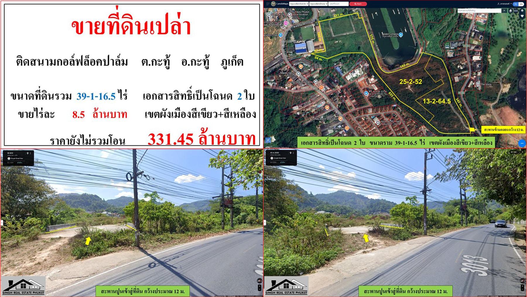 ขายที่ดินเปล่า ขนาด 39-1-16.5 ไร่ ติดสนามกอล์ฟล็อคปาล์ม ต.กะทู้ อ.กะทู้ ภูเก็ต