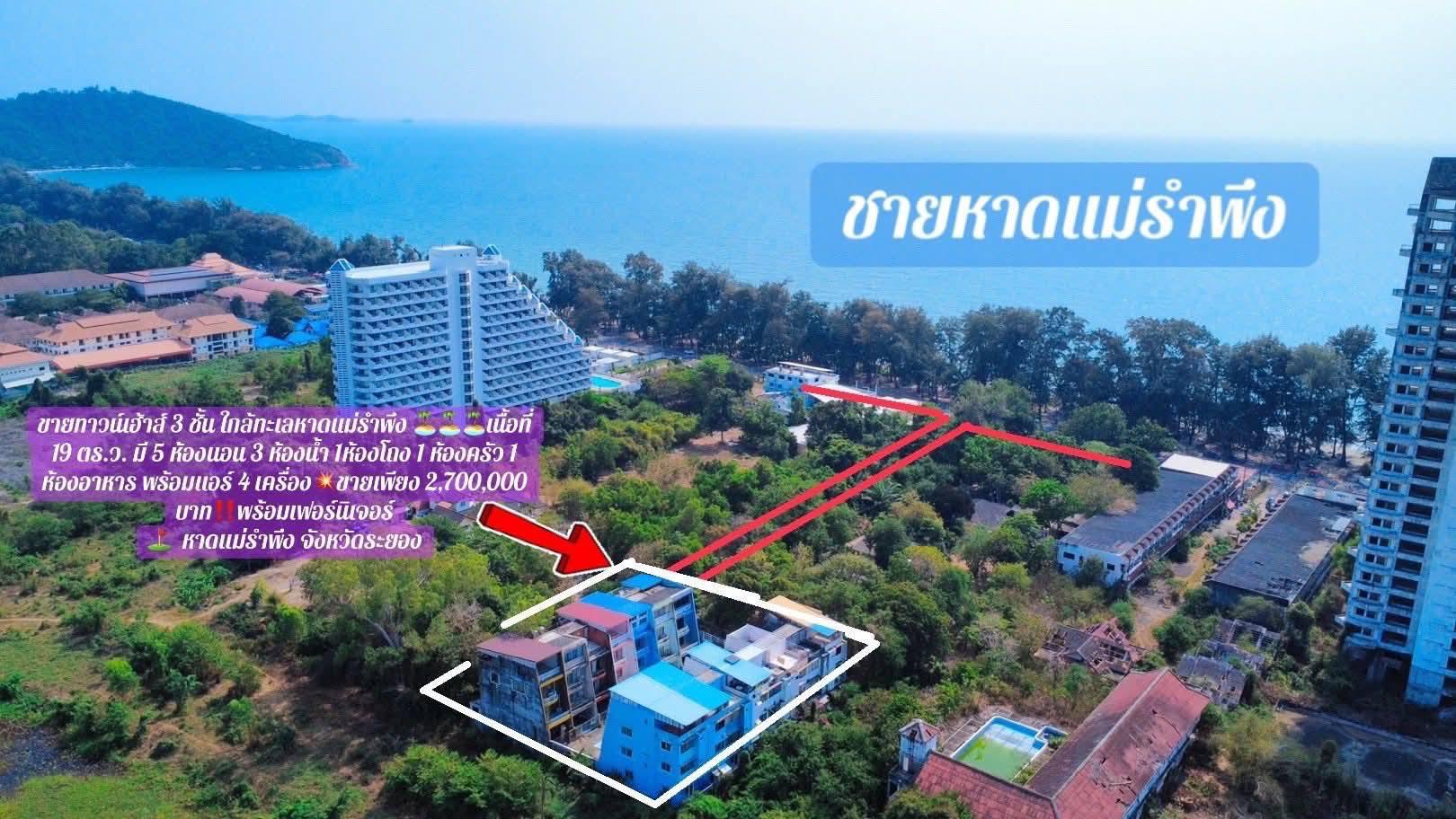 ขายทาว์เฮาส์ใกล้ทะเลหาดแม่รำพึงจ.ระยองเนื้อที่19ตรว.ขายราคา2.700.000ลบ.ต่อลองได้ครับ