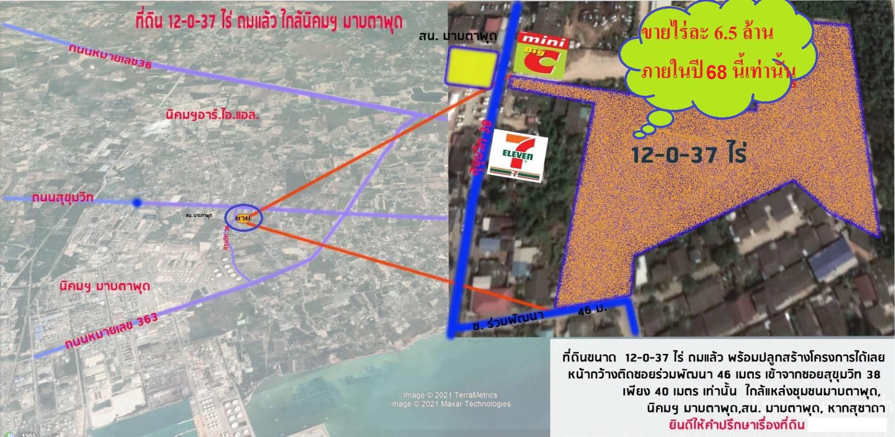 - ที่ดินใกล้เเหล่งชมชุน มาบตาพุด ซอยร่วมพัฒนา จ. ระยอง