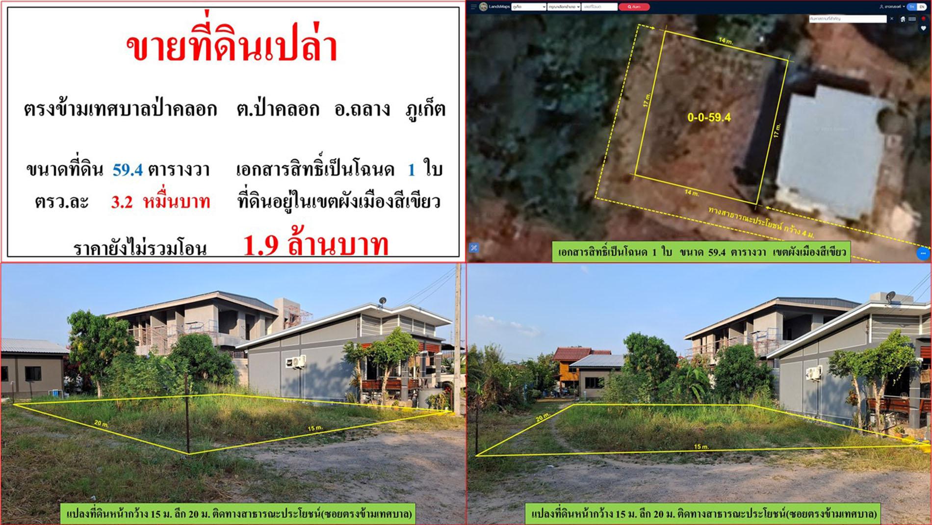 ขายที่ดินเปล่า ขนาด 59.4 ตรว. ตรงข้ามเทศป่าคลอก ต.ป่าคลอก อ.ถลาง ภูเก็ต
