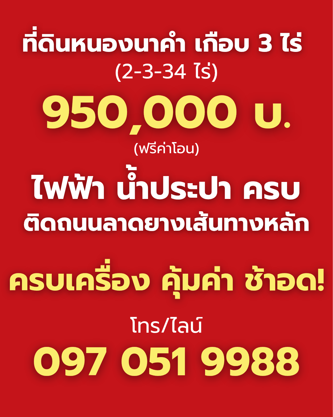 สอบถามเพิ่มเติม ทักแชทได้เลยนะครับ โทร / ไลน์ (ไอดีไลน์) 097 0519988