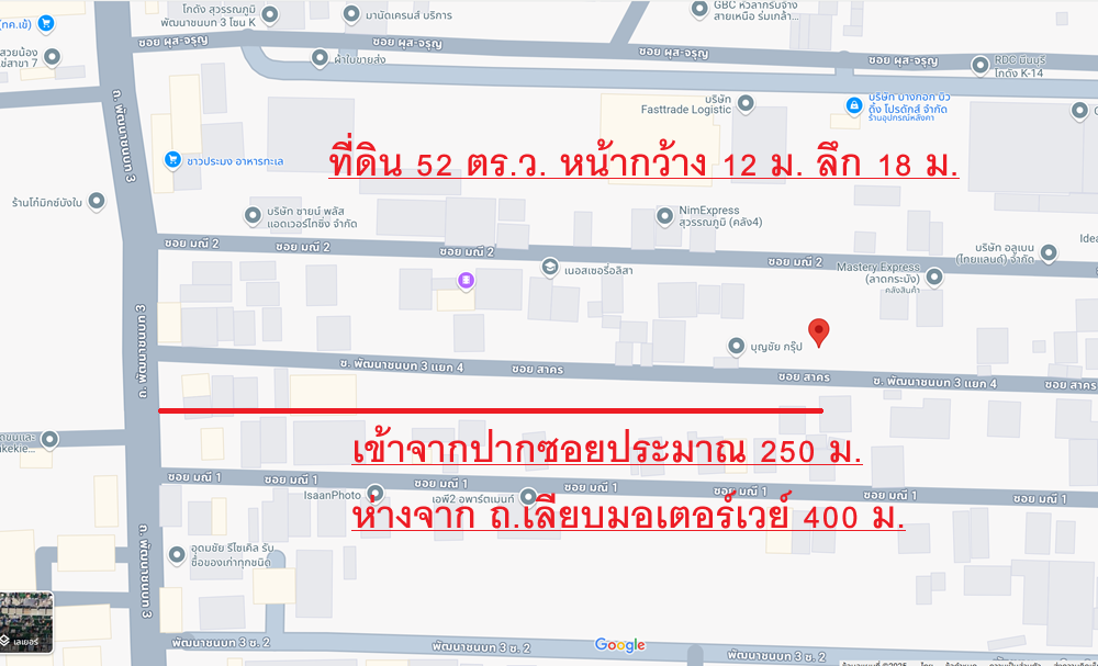ขายที่ดิน 52 ตรว.พัฒนาชนบท 3 แยก 4 ลาดกระบัง ใกล้สนามบินสุวรรณภูมิ, แอร์ลิงก์ ลาดกระบัง เข้าออก ถ. ศรีนครินทร์-ร่มเกล้า