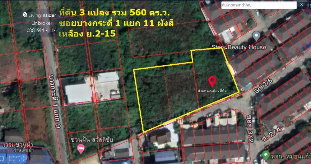 - ที่ดิน 3 แปลงติดกัน พื้นที่ 560 ตร.ว. ผืนใหญ่ สวย