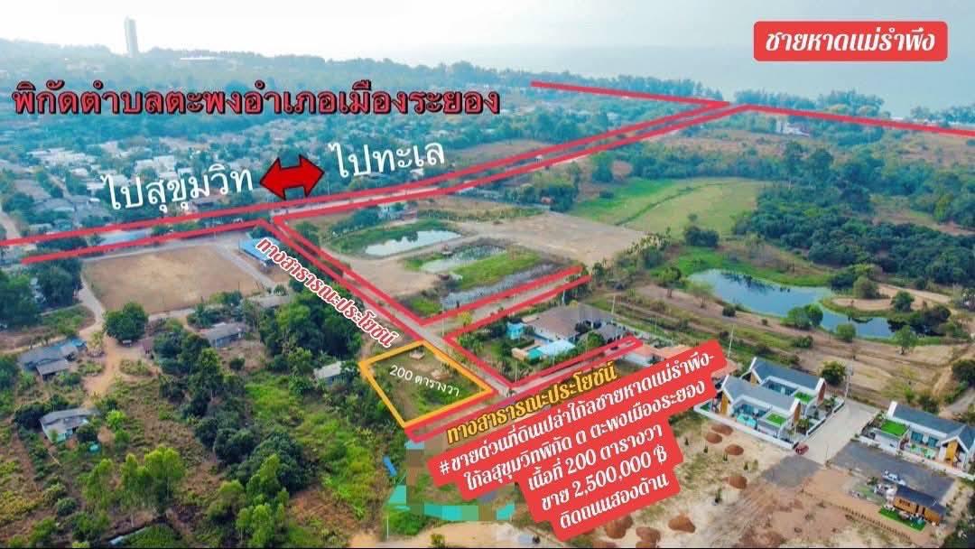 ขายที่ดินเปล่าใกล้หาดแม่รำพึงจ.ระยองเนื้อที่200ตรว.ขายราคา2.500.000ลบ.