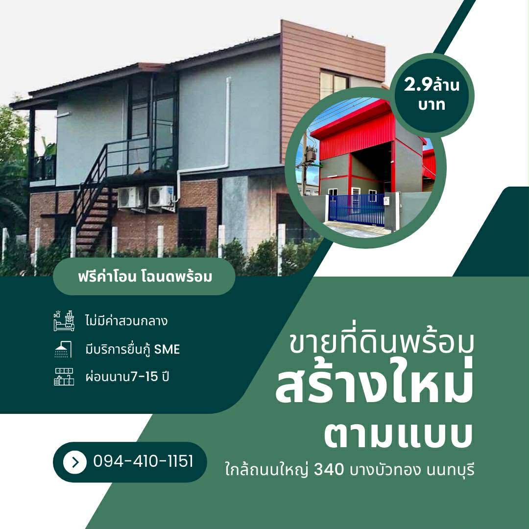 ขายที่ดินบางบัวทอง   นนทบุรี  ️ที่ดินพร้อมโกดังใหม่ เริ่มต้น 2.9ล้านบาท  มีหลายแบบให้เลือก ออกแบบตามสไตล์คน  ใกล้ถนนใหญ่ 340  อยู่แหล่งทำเลทอง อยู่ใกล้ศูนย์กระจายครั้งสินค้าเซเว่น จากเซ็นทรัลเวสต์เกตมา เพียง 15 นาที  มีบริการยื่