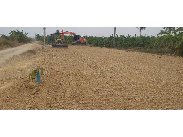 ที่ถมแล้ว ถมสูงเสมอถนนสาธารณะ ที่สูง น้ำไม่ท่วม ด้านหน้าติดถนน