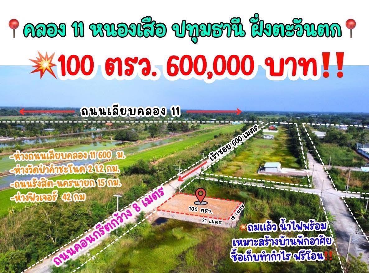 ที่ดินคลอง11 หนองเสือ ปทุมธานี ฝั่งตะวันตก