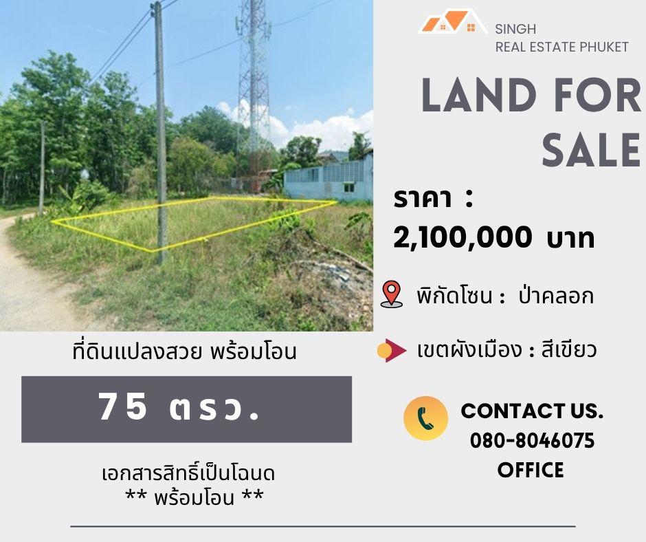 ** LAND FOR SALE ** ที่ดินเปล่า 75 ตรว. ( ซอยนาเหนือ - ป่าคลอก )