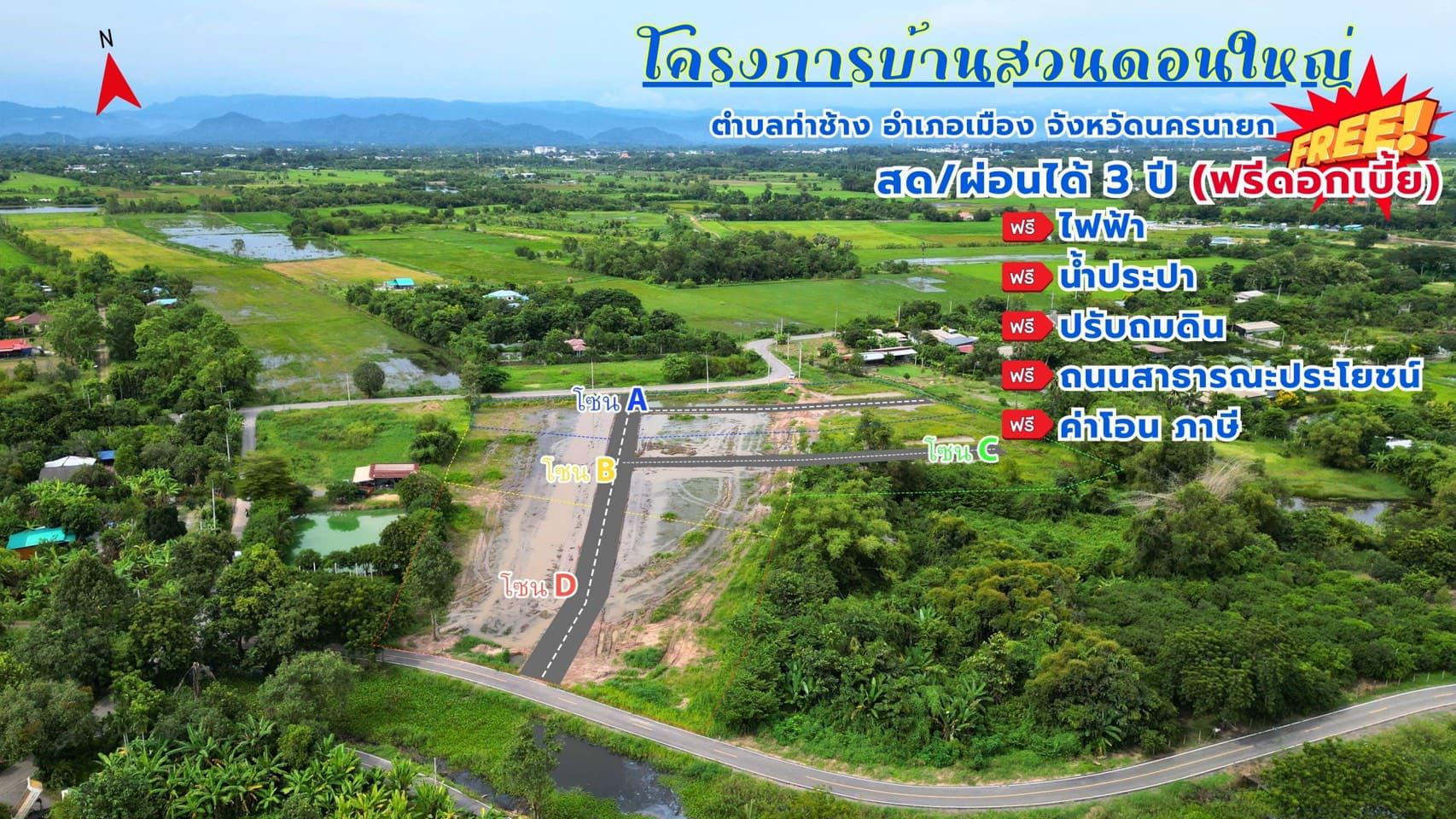 #โครงการบ้านสวนดอนใหญ่ ใกล้วัดมณีวงศ์ นครนายก ติดถนนลาดยาง(ทางหลวงชนบท)อยู่ในแหล่งชุมชน เหมาะสำหรับทำบ้านสวน พักผ่อนวัยเกษียณ ค้าขายได้