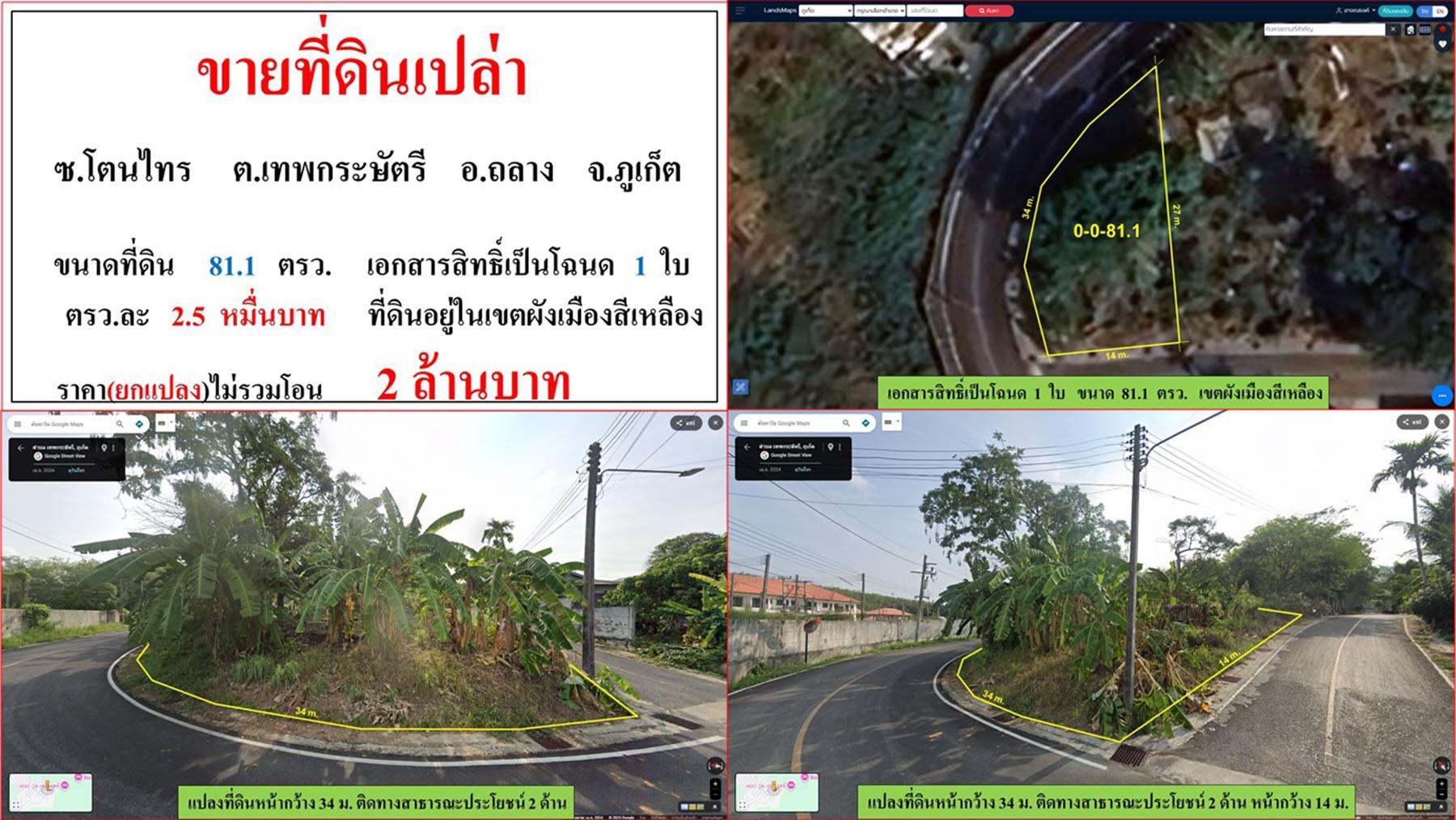 ขายที่ดินเปล่า ขนาด 81.1 ตรว. ซ.โตนไทร ต.เทพกระษัตรี อ.ถลาง ภูเก็ต