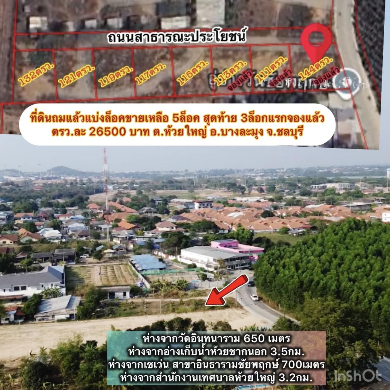 ที่ดินแบ่งล็อคขายห้วยใหญ่เขามะกอก เหลือ 5ล็อก ตรว.ละ 26,500 บาท ต.ห้วยใหญ่ อ.บางละมุง จ.ชลบุรี ที่ดินถมแล้วทำเลดีมาก