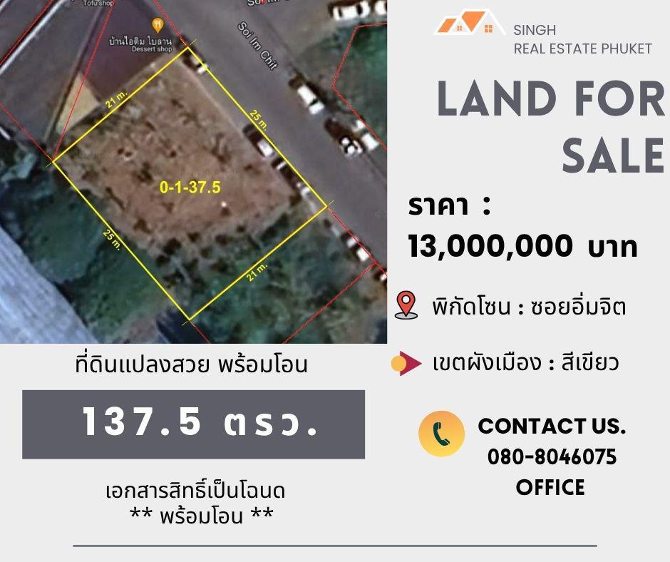 ** LAND FOR SALE ** ที่ดินเปล่า 137.5 ตรว. ( ซอยอิ่มจิต - ตลาดเหนือ )