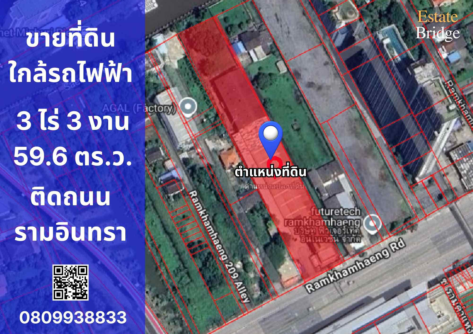 ขายที่ดิน 3 ไร่ 3 งาน 59.6 ตารางวา ใกล้รถไฟฟ้าสายสีชมพูและสายสีส้ม