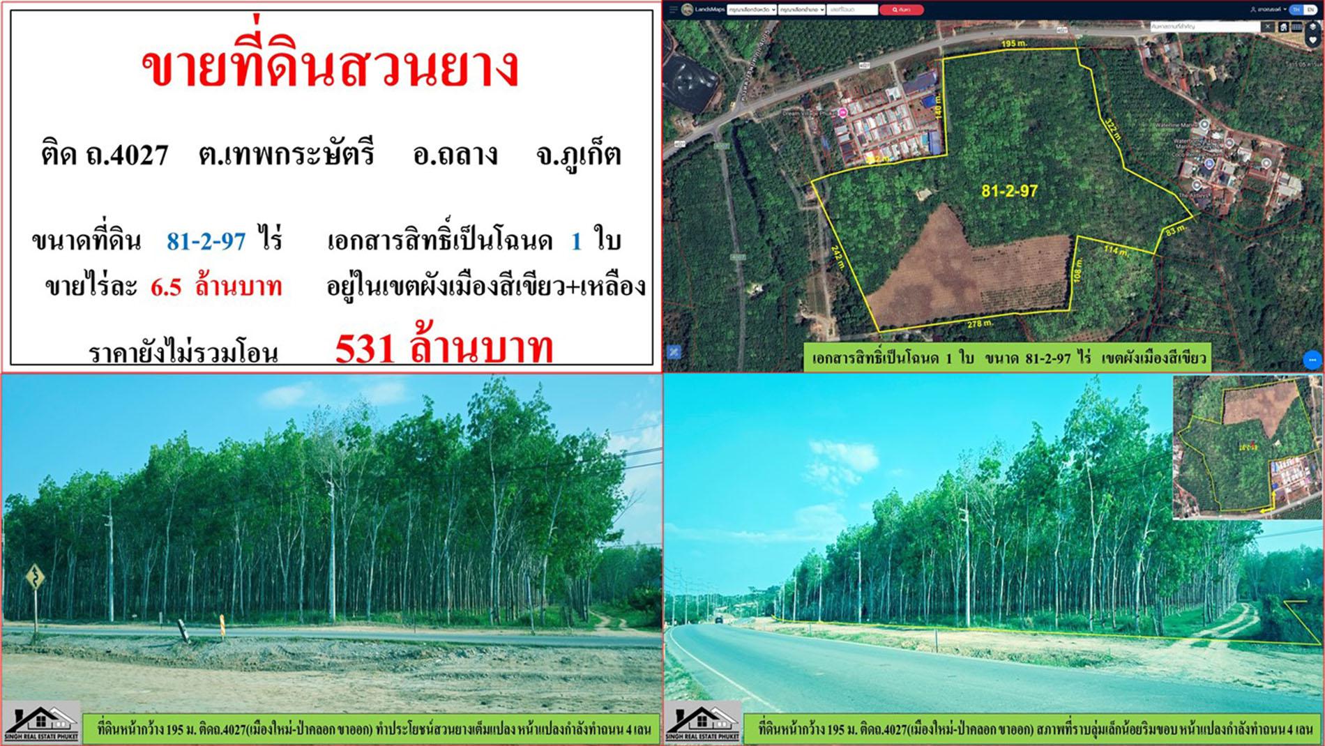 ขายที่ดินสวนยาง ขนาด 81-2-97 ไร่ ติด ถ.4027 ต.เทพกระษัตรี อ.ถลาง ภูเก็ต