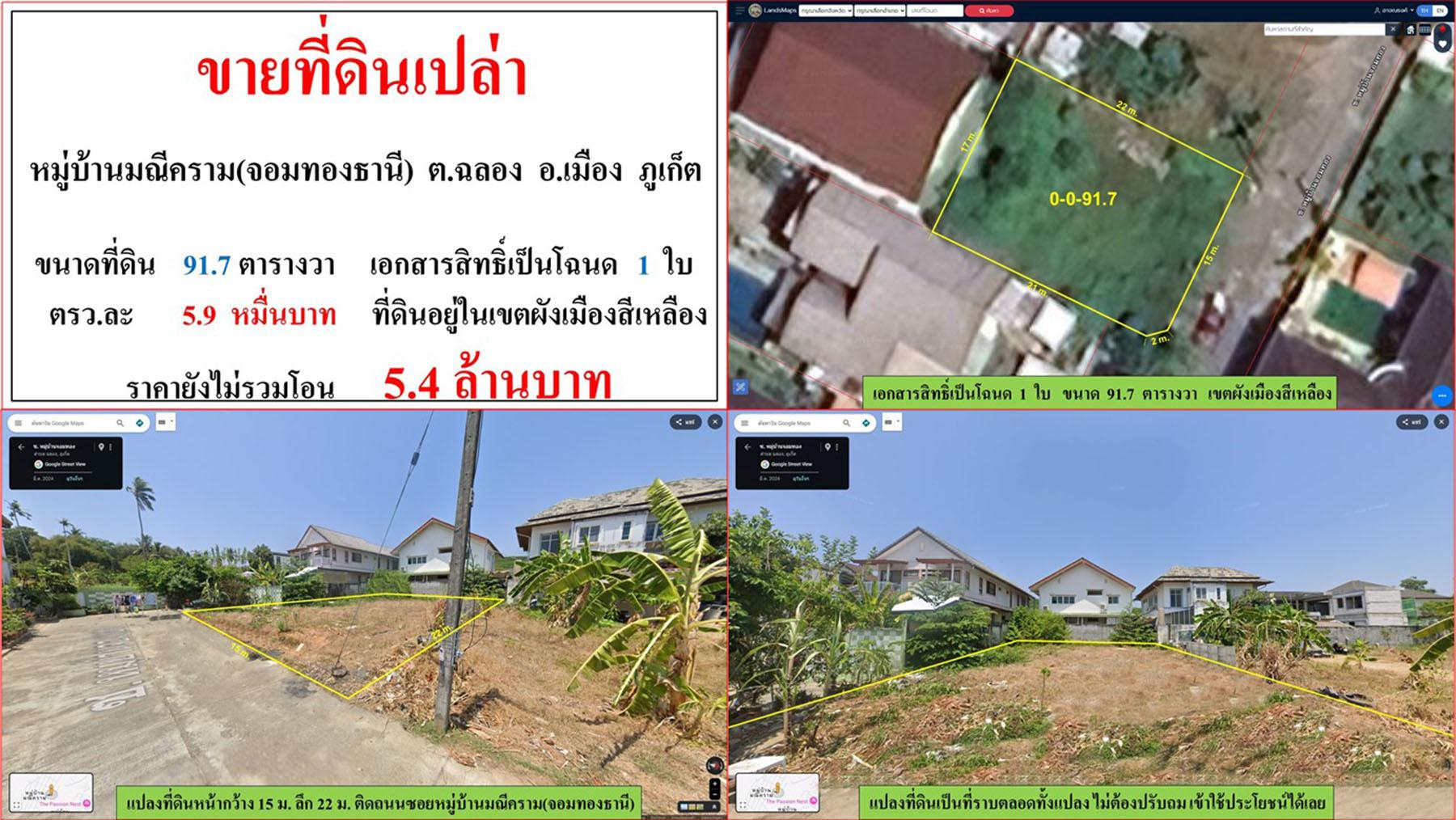 ขายที่ดินเปล่า ขนาด 91.7 ตรว. หมู่บ้านมณีคราม(จอมทองธาณี) ต.ฉลอง อ.เมือง ภูเก็ต