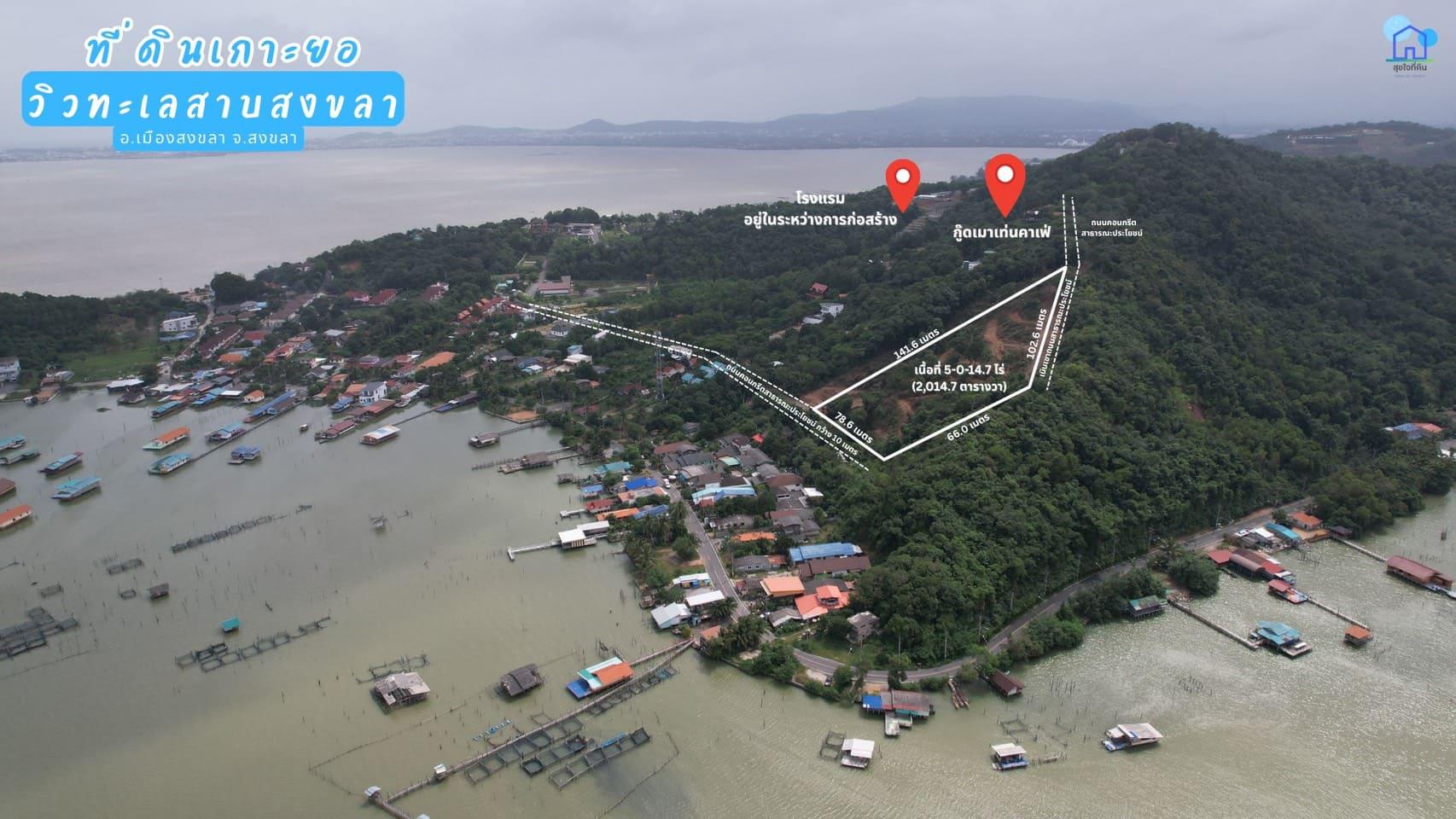 Discover 13-3-26.8 rai (5,526.8 sq.wah) of pristine hilltop land, offering uninterrupted panoramic views of Songkhla Lake’s shimmering waters and sunset skyline.