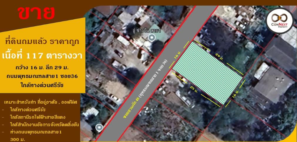 ที่ดินถมแล้ว117ตรว.ราคาถูกที่สุดในสาย 1ซอย36