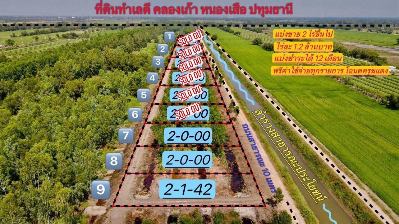 ที่สวยทำเลดี อนาคตไกล ค.9 ต.บึงชำอ้อ อ.หนองเสือ ปทุมธานี ติดถนนเลียบคลองแอน แบ่ง 1 ไร่ มีเพียง 6 แปลงเท่านั้น