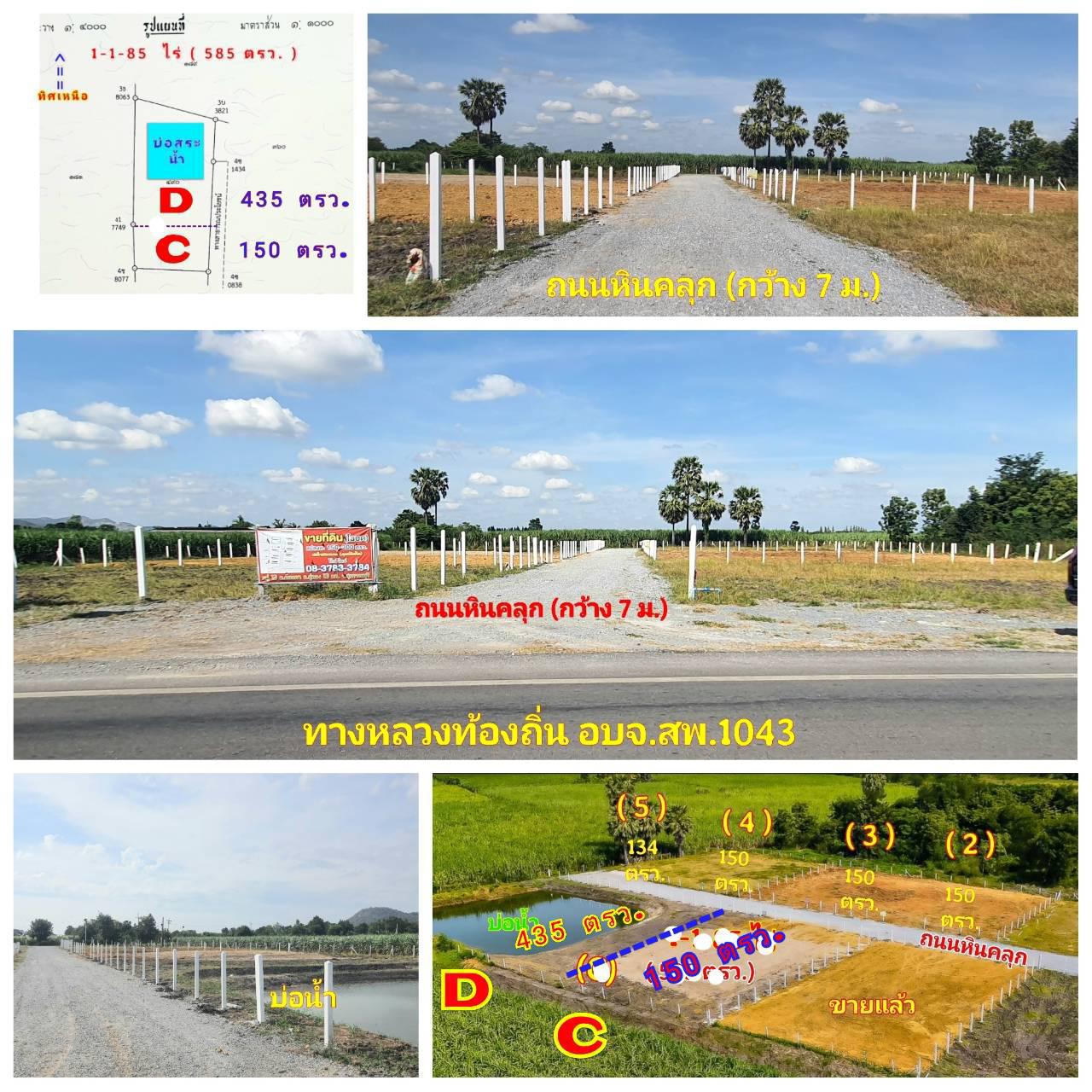 ที่ดิน ถมดินแล้่วทั้งหมด ด้านหน้าติดทางหลวงชนบทIอบจ.สพ 1043 (ถนนลาดยาง) ด้านใน ถนนหินคลุก (กว้าง 7 ม.) ทางสาธารณประโยชน์ ขยายเขตไฟฟ้า น้ำประปา หมู่บ้าน ม.13 อบต.ดอนคา อ.อู่ทอง 13 กม. จ.สุพรรณบุรี 35 กม.
