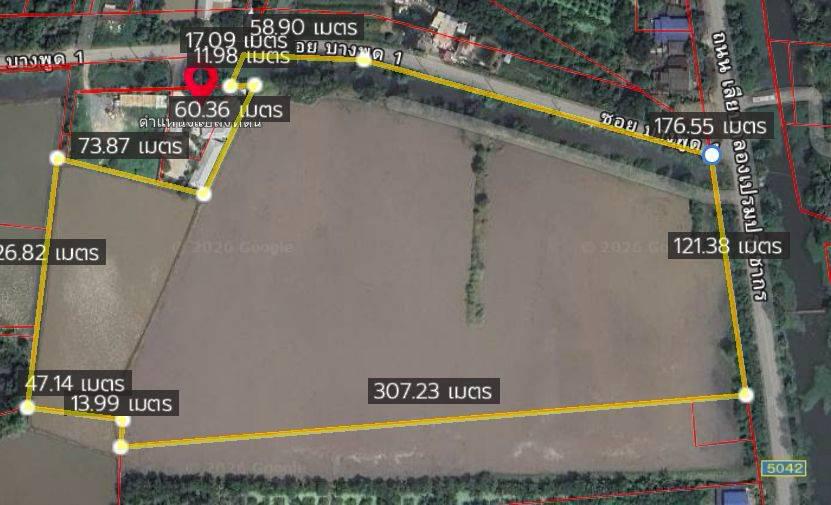 รูปขนาดที่ดิน กว้าง 121 เมตร ลึก 307 เมตร