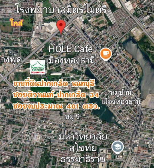 ขายที่ดินปากเกร็ด ซอยติวานนท์-ปากเกร็ด 34 ซอยงบประมาณ 401 ตรว.