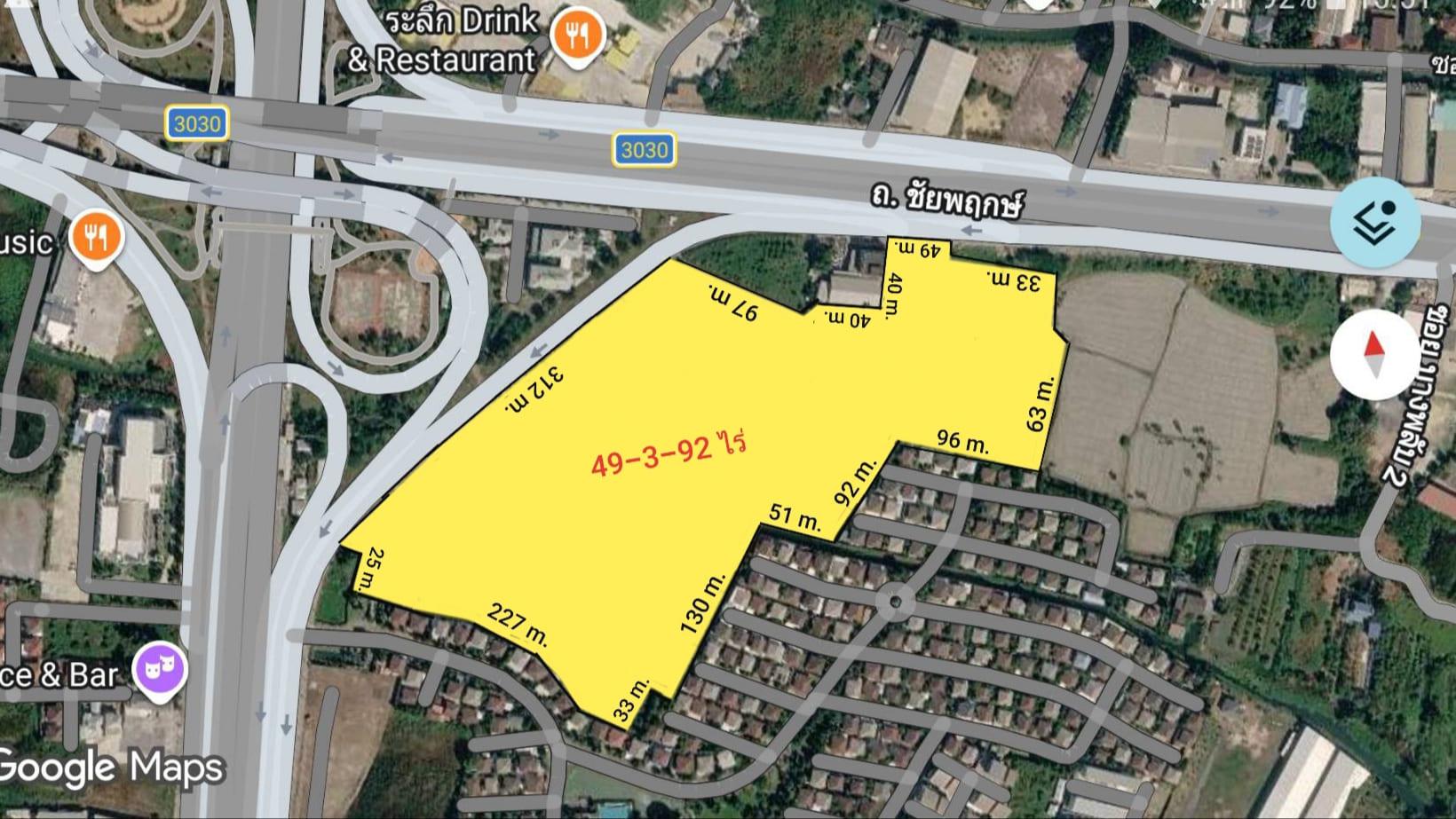- หน้ากว้างติดถนนฝั่งชัยพฤกษ์ 49 เมตร