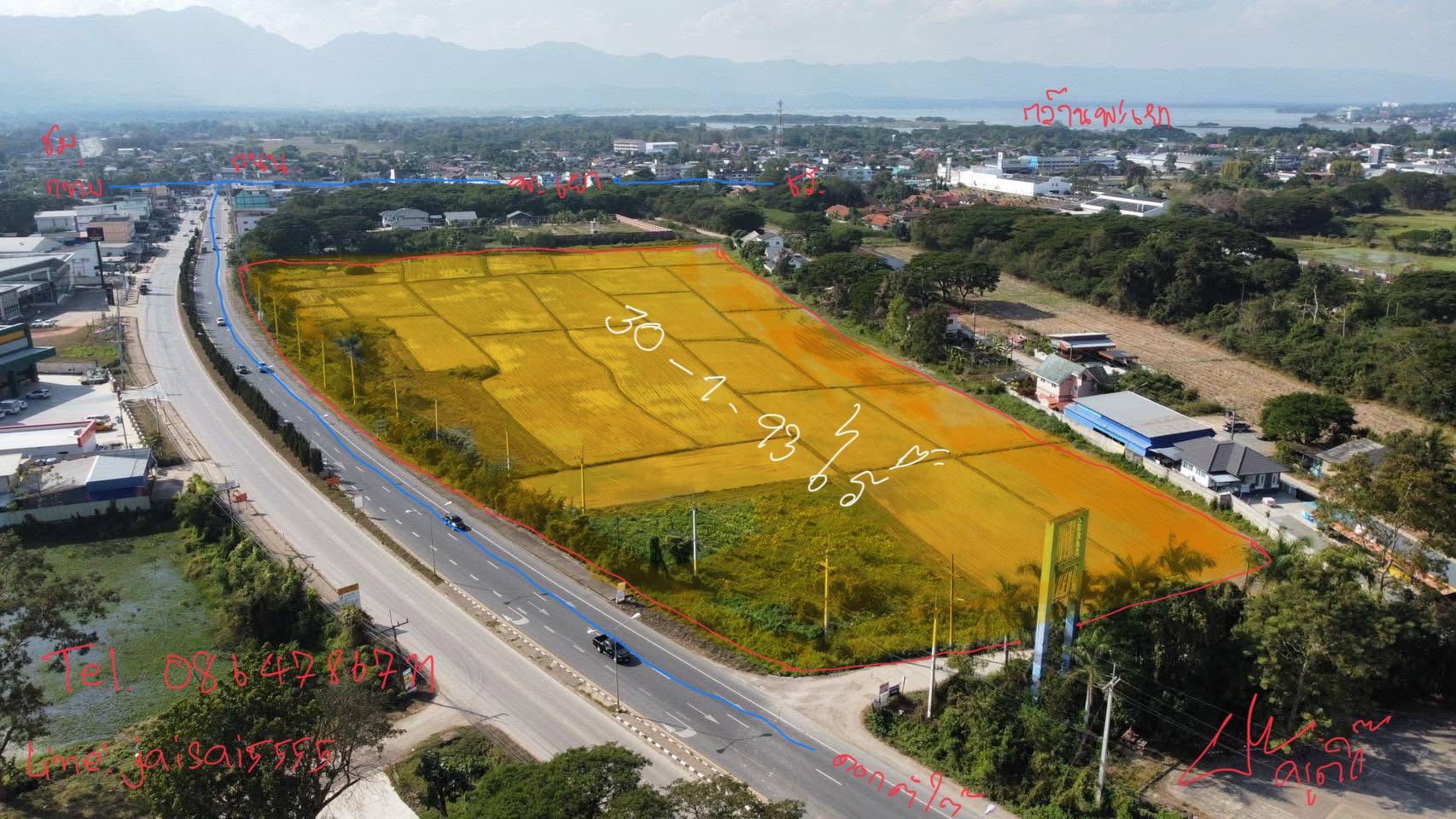 - ที่ดิน ต. แม่กา พะเยา หน้ากว้าง 300 กว่าเมตร ยกแปลง 45 ไร่ ไร่ละ 2.5 ล้าน