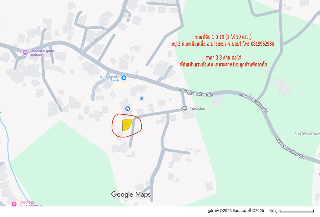 ขายที่ดิน 1 ไร่ 19 ตารางวา ราคา 9,500 บาทต่อตารางวา (3.8 ล้าน ต่อไร่)