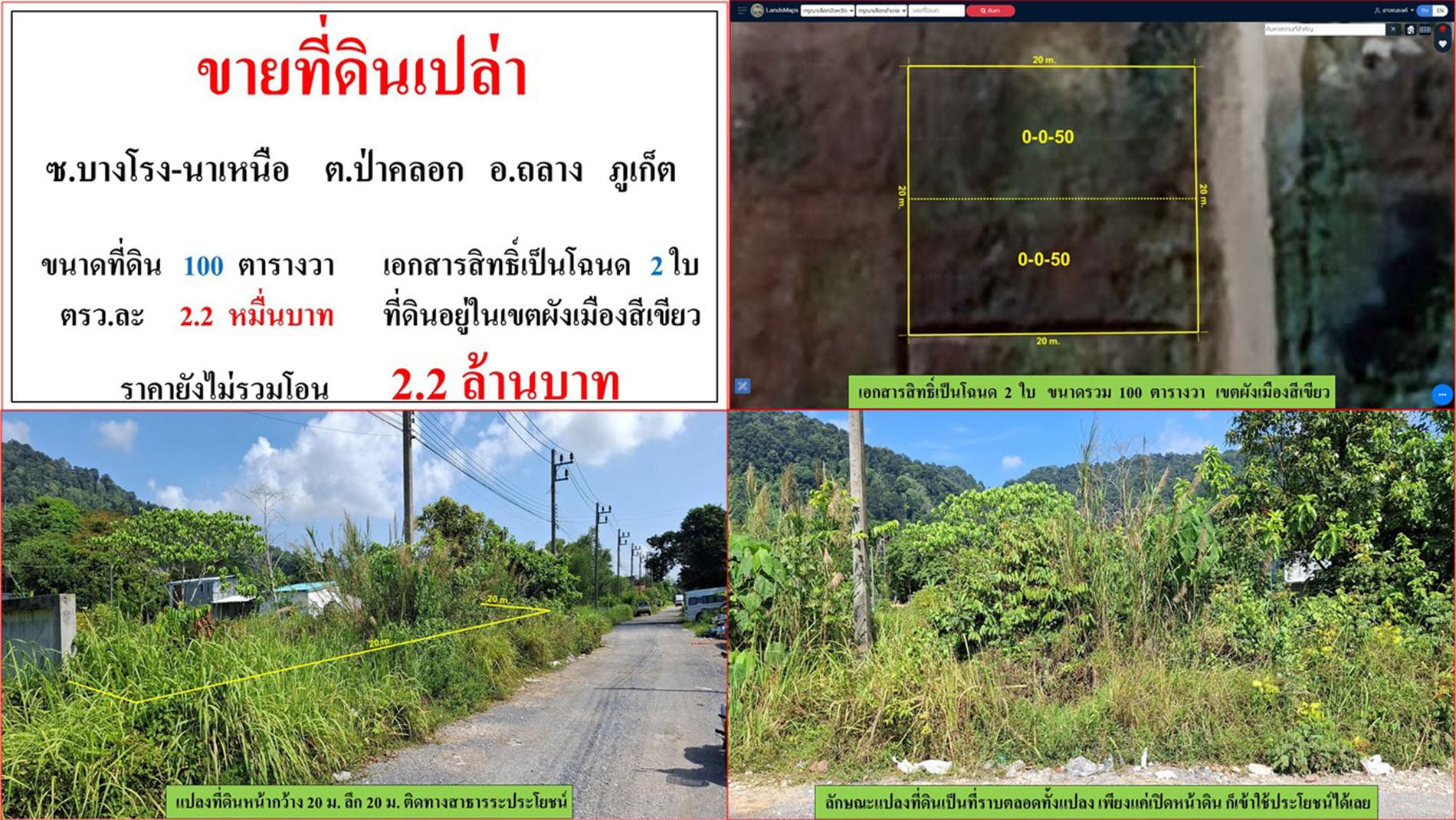 ขายที่ดินเปล่า ขนาด 100 ตรว. ซ.บางโรง-นาเหนือ ต.ป่าคลอก อ.ถลาง ภูเก็ต