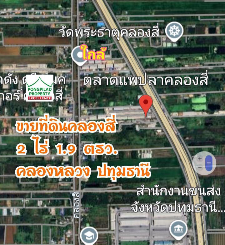 ขายที่ดินคลองสี่ คลองหลวง 2 ไร่ 1.9 ตรว.ผังชมพู