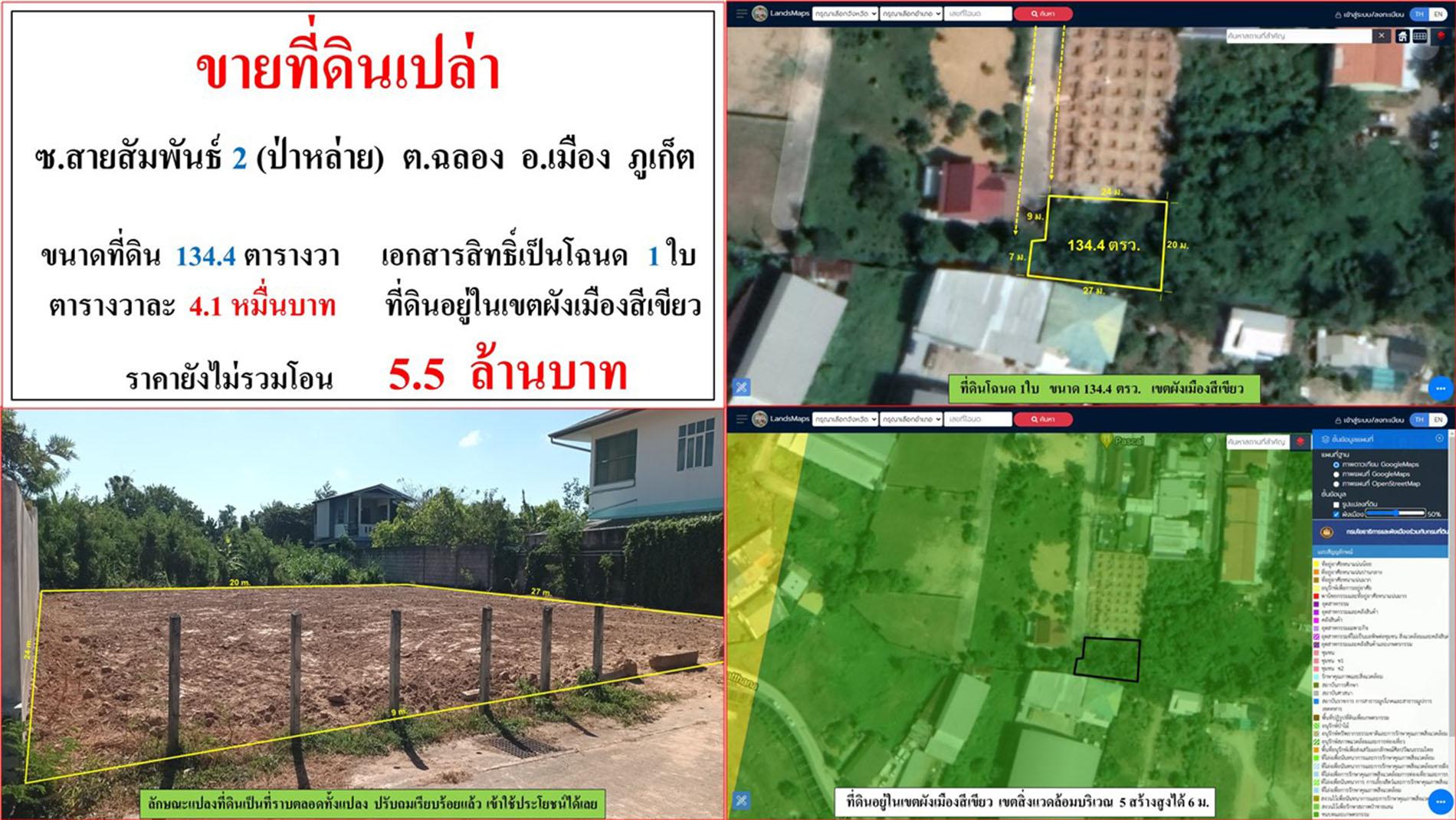 ขายที่ดินเปล่า ขนาด 134.4 ตรว. ซ.สายสัมพันธ์ 2(ป่าหล่าย) ต.ฉลอง อ.เมือง ภูเก็ต