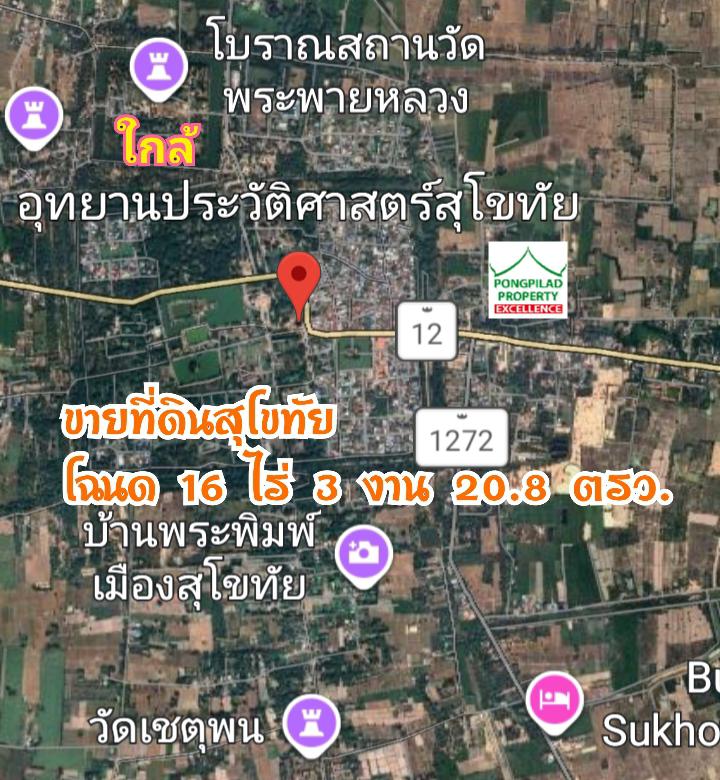 ขายที่ดินเมืองเก่า ใกล้อุทยานประวัติศาสตร์สุโขทัย 16 ไร่ 3 งาน 20.8 ตรว. ไร่ละ 160,000 บาท