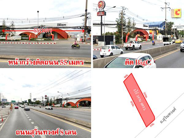 ที่ดินติดถ.สุวินทวงศ์ ติดห้างบิ๊กซี ใกล้รถไฟฟ้าสายสีชมพูและสายสีส้ม