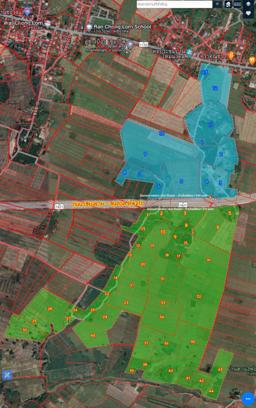 ด้านหน้าที่ดิน ติดหมายเลขทางหลวง 1421