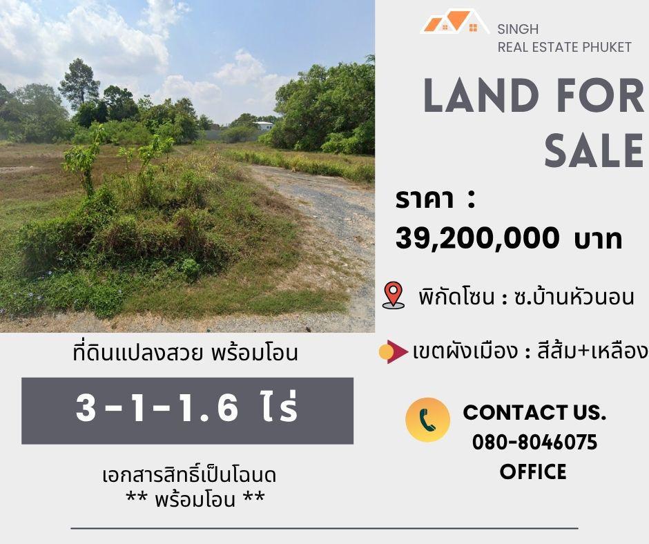 ** LAND FOR SALE ** ที่ดินเปล่า 3-1-1.6 ไร่ ( บ้านหัวนอน - เชิงทะเล )