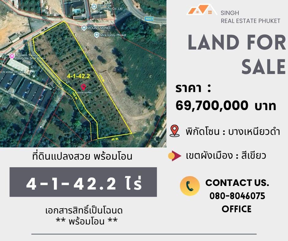** LAND FOR SALE ** ที่ดินเปล่า 4-1-42.2 ไร่ ( เขื่อนบางเหนียวดำ - ศรีสุนทร )