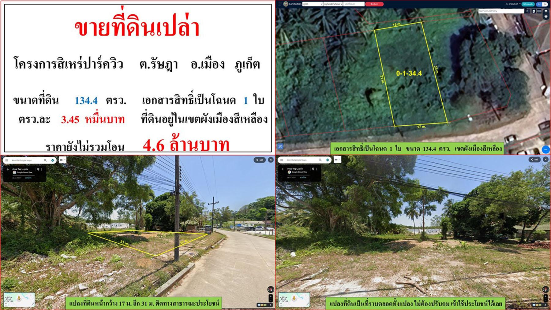 ขายที่ดินเปล่า ขนาด 134.4 ตรว. โครงการสิเหร่ปาร์ควิว ต.รัษฎา อ.เมือง ภูเก็ต