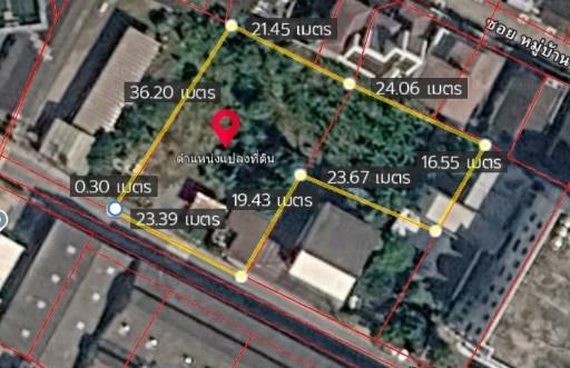 ที่ดินถมแล้ว 307 วา หน้ากว้างติดถนน 24 เมตร ลึก 36 เมตร ด้านหลัง 24 เมตร ใกล้การไฟฟ้าฝ่ายผลิตบางกรวย