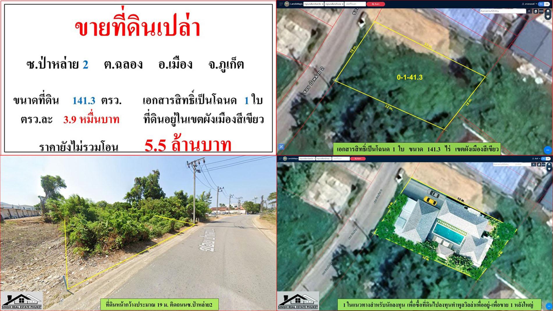 ขายที่ดินเปล่า ขนาด 141.3 ตรว. ซ.ป่าหล่าย 2 ต.ฉลอง อ.เมือง ภูเก็ต