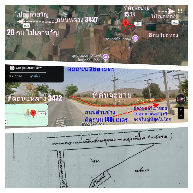 ขายที่ดินติดถนนใหญ่ 15ไร่25 ตรว ต.หนองโอ่ง อ.อู่ทอง สุพรรณบุรี ที่ดินห่าง อ.อู่ทอง ประมาณ 8 กม. ห่าง อ.เลาขวัญ ประมาณ 20 กม ที่ดินติดถนน 2 ด้าน หน้ากว้างติดถนน กว้างประมาณ 280 เมตร ด้านข้าง ติดถนนประมาณ 140 เมตร ถนนด้านข้าง ไปอุทยานพระฤาษี องค์ใหญ่ที่สุดในโลก มีวัดถ้ำ ห่างประมาณ 1 กม ใกล้แหล่งท่องเที่ยว เอกสารโฉนด พร้อมโอน ขายไร่ละ 5 แสน ออกค่าใช้จ่ายในการโอนกรรมสิทธิ์ คนละครึ่ง โทร. 0873338678