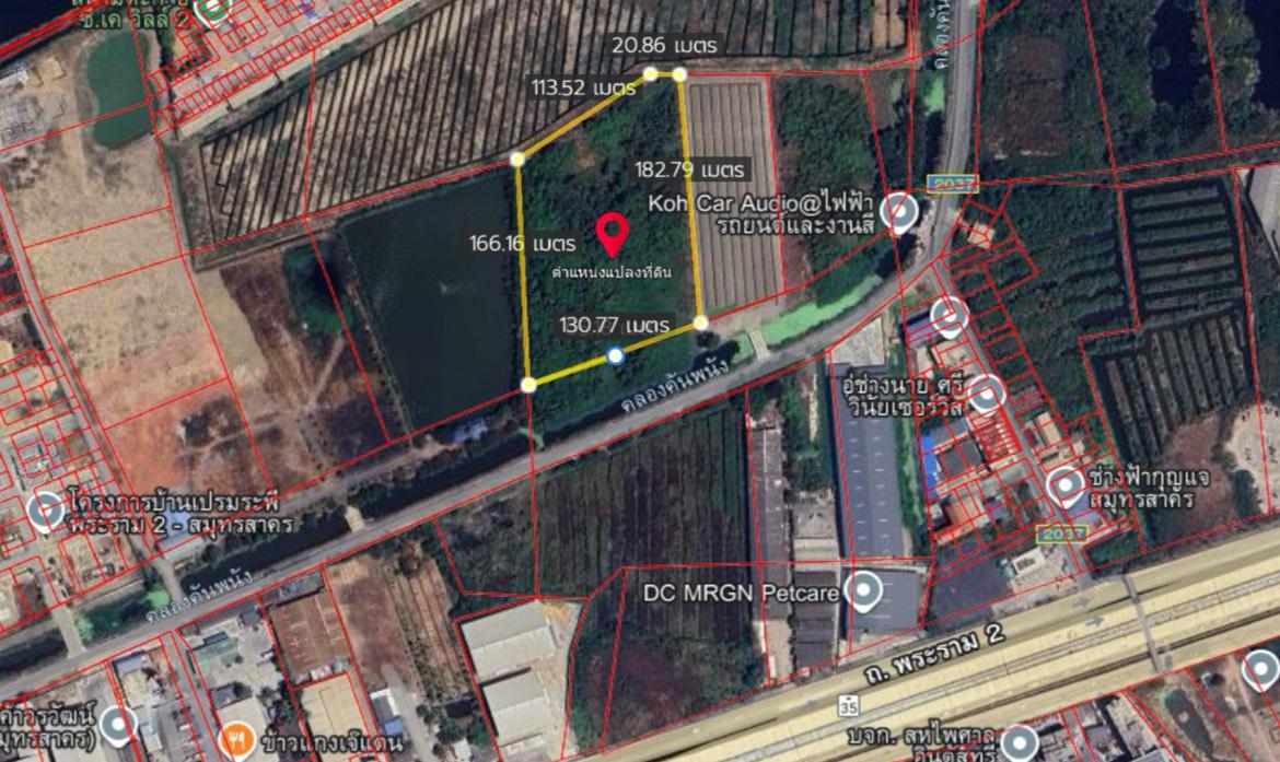 ขายที่ดิน13ไร่3งาน20ตารางวา พื้นที่สีชมพู เหมาะสร้างโรงงาน โกดัง ใกล้ถนนพระราม2เพียง500เมตร ขายราคา3.5ล้านต่อไร่